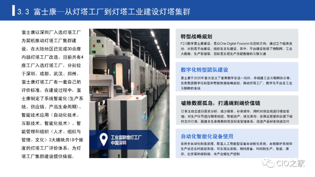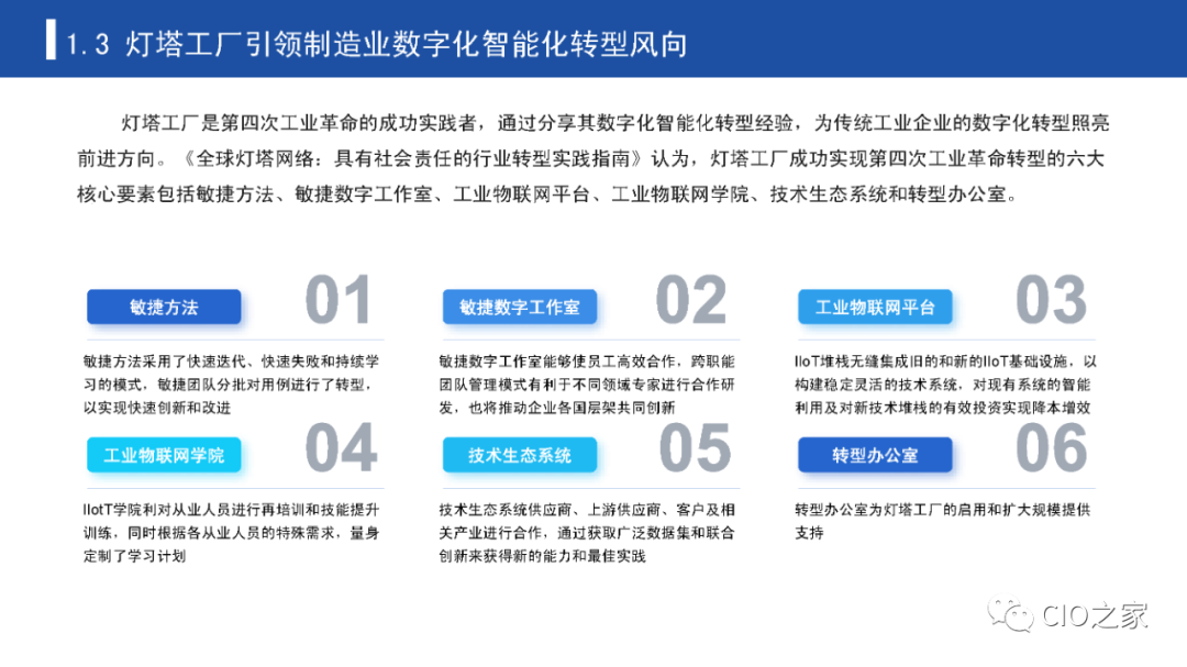 The lighthouse factory is the leader of intelligent manufacturing, when we encounter wind and waves, darkness, do not know the direction, people will need a lighthouse. On the road of manufacturing upgrading in China, Lighthouse factory has the characteristics of networking, automation and more optimization, but also has the representativeness, technology, efficiency and value to guide the vast manufacturing industry in China. 数字化转型网www.szhzxw.cn