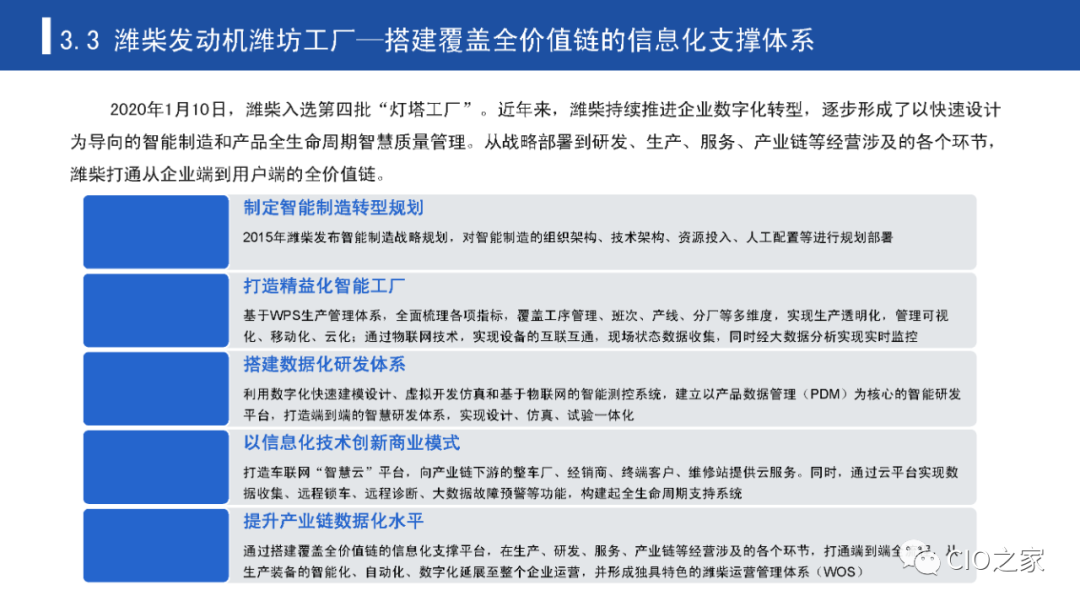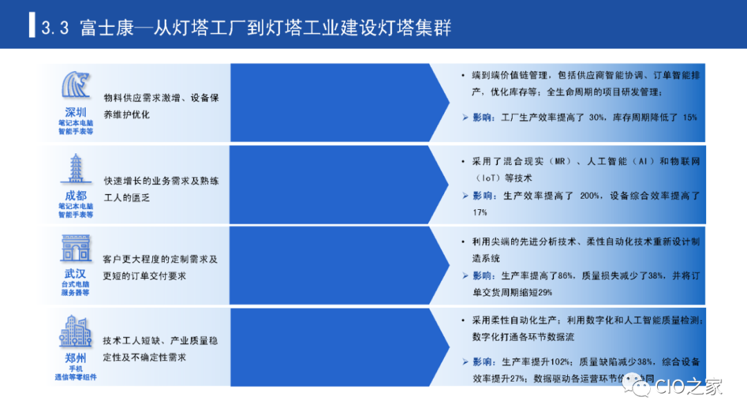 The Lighthouse factory has stepped out of the territory of the digital factory and started the journey of the digital enterprise. On the basis of digital production, they open up digital channels with other value chains, realize resource optimization of each value chain, and bring new core values to downstream customers and upstream suppliers. Their approach is diverse, for customer personalized highly customized, for shortening the product to market delivery collaborative design and production, for product value-added services remote interconnection advanced analysis, but also for the whole supply chain optimization and supplier interconnection transparency. Fourth Industrial Revolution technology can not only reduce the cost of the enterprise itself, but also realize the core value creation of the entire ecosystem. 数字化转型网www.szhzxw.cn