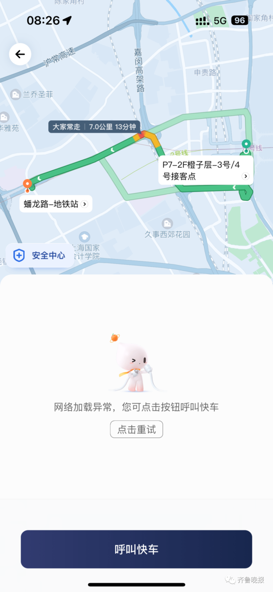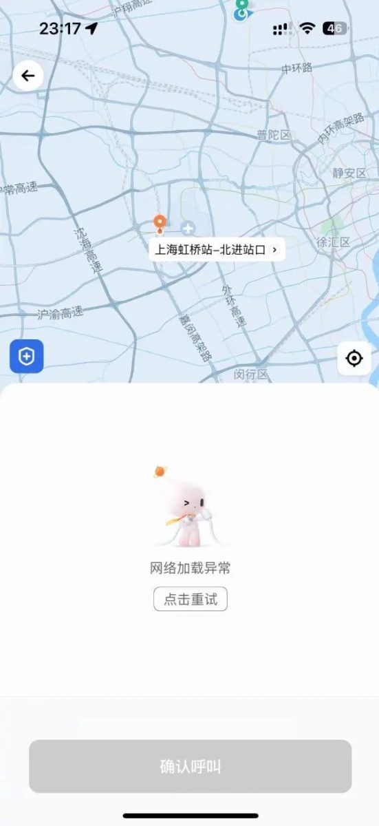8:00至9:00之间,多家媒体记者在上海、北京两地多次尝试用滴滴App打车,均显示“网络加载异常”,“点击重试”多次后依然显示加载异常,无法使用打车服务。