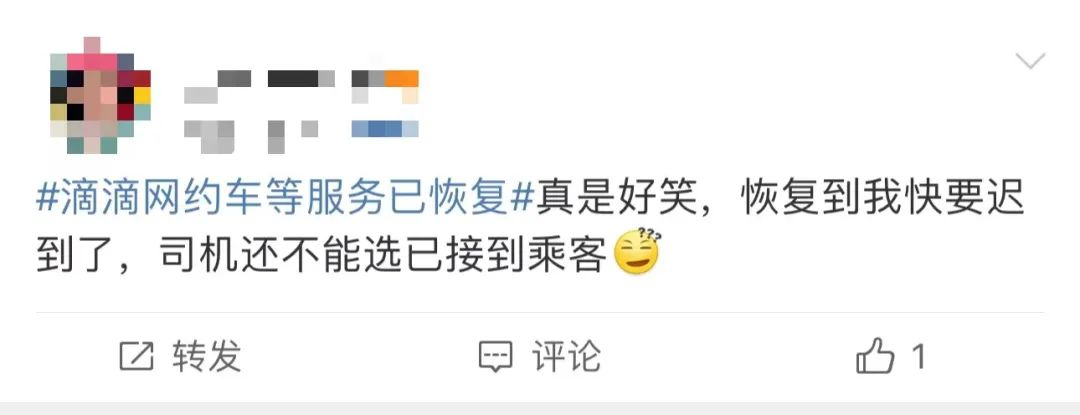 但在留言区,不少网友反映滴滴App并没有恢复正常服务:
