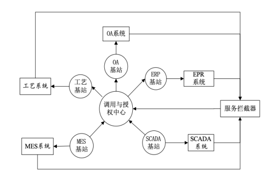 此处提出一种多个管理系统的协同系统以及协同架构方案(图 5),在数据采集层建立一个中间件,与多个系统建立连接,通过拦截器监听系统日志,并在监听到预定变化的情况下,以日志作为源头推送预定消息。在数据传输层建立统一消息控制中心,由控制中心进行调控,将消息发送至其他应用系统或利用其数据库开发的基站系统,调用目标系统功能。基于以上的逻辑链,当发生业务需求时,无须对多个管理系统的源程序进行更改,只要配置对应日志拦截,即可实现对多系统应用层功能的调用。解决工业互联网环境下集成的系统包含了大量非开源系统,以及因集成复杂而出现的多向业务、时间阻滞和流程嵌套问题。如此,在工业互联网整体架构下,所有调整都解耦成面向应用的单例功能,可降低多系统协同环境的修改成本和复杂度。