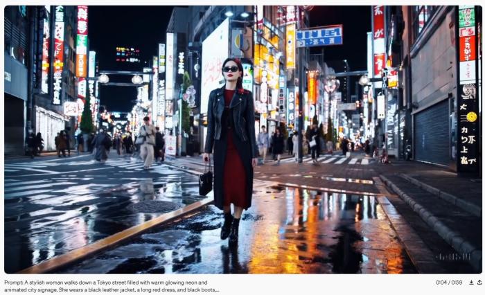 OpenAI的官网介绍称,使用这款模型可以用文本生成长达一分钟的视频,视频可具有多个角色、特定类型的运动、精确主题和背景细节等复杂场景。
