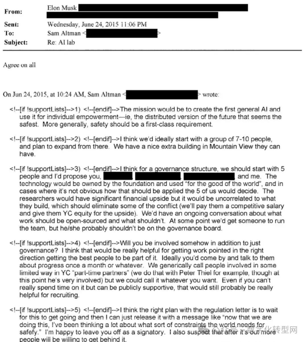 当地时间2月29日晚间,特斯拉CEO马斯克起诉了OpenAI。马斯克向美国旧金山高等法院提交了一份长达46页的诉讼书,痛斥OpenAI以及其联合创始人Sam Altman和Greg Brockman。甚至还公开了一份重量级“秘密邮件”! 数字化转型网(www.szhzxw.cn)