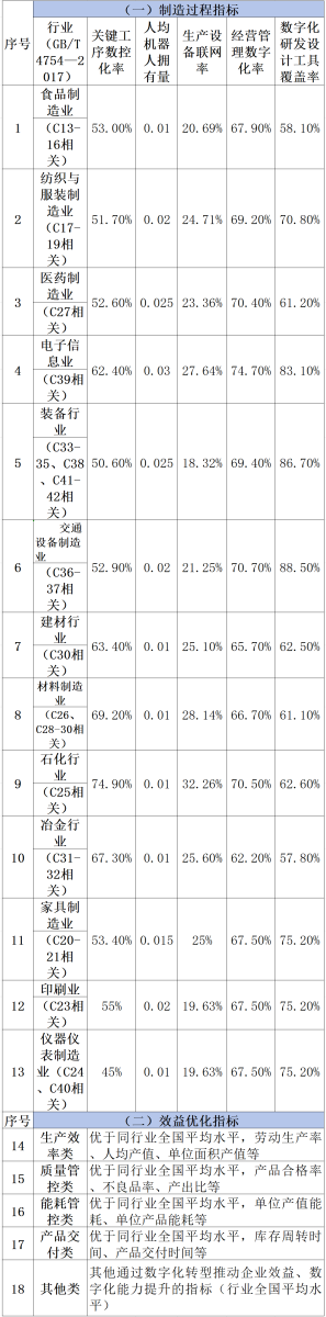——全面实现数字化达标。积极推进数字化、智能化标准体系贯标,通过数字化、智能化转型升级,推动规模以上制造业企业全面实现数字化达标,重点产业领域关键工序数控化率达到70%。