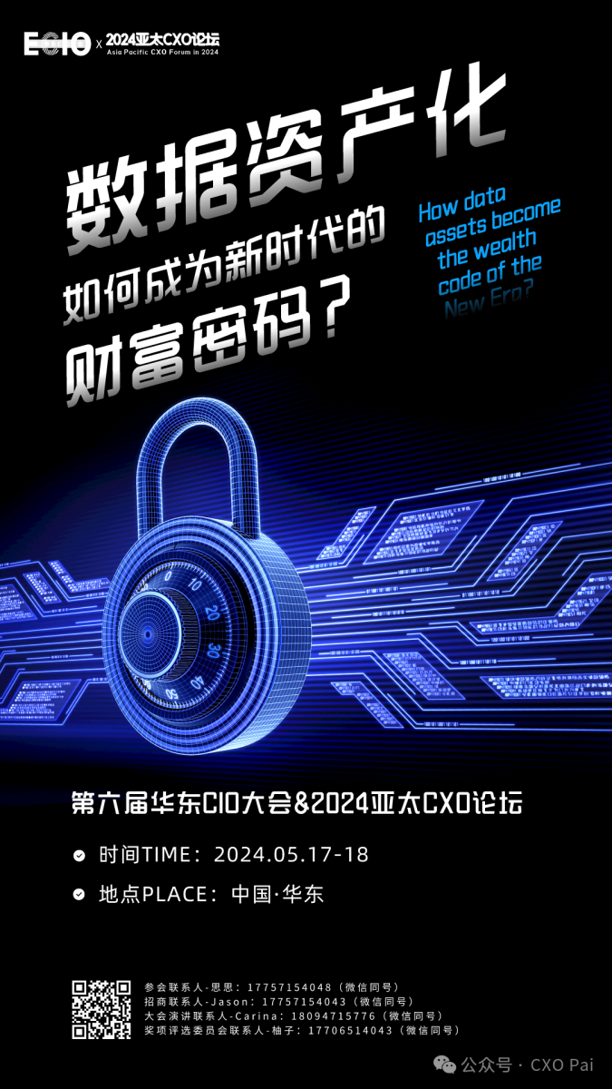 第六届华东CIO大会&2024亚太CXO论坛将于5月17-18日隆重召开,数据资产化如何成为新时代的财富密码?期待在这场思想盛宴上您能够得到更多的解答!