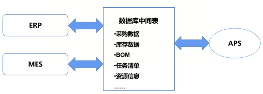 MES鉴于APS、MES、ERP系统集成可能涉及不同系统供应商,建议采取数据库中间表的方式,独立开发完成,在保障较高集成开发效率的同时,定义好数据库中间表格式,明确数据认责。