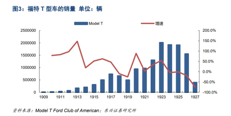 生产流程切割:通过不断分工,将生产流程切割成小的生产单元,然后按照串联的先后顺序推进。每个 工位仅完成固定,单一的任务即可。这样就大幅减少了对技术工人的依赖,而且通过不断重复同样的动 作以提升生产效率。在流水线之前,福特一个装配工的平均周期时间(完成一项工作直到开始重复这个 工作前的时间),总共为 514 分钟,1914 年引入流水线后,组装工人的周期时间缩短到 1.19 分钟。与手工制造相比,福特流水线取得了显著的成绩。福特在各个领域的组装效率都全面领先于手工制造。借助 于流水线生产模式,福特销量取得了快速增长,1923 年 T 型车销量达到顶峰,单一车型年销量超过 200 万辆。同时 T 型车价格也不断下降,1910 年 T 型车的售价为 780 美元,1911 年降至 690 美元。流水线模式下, 1914 年 T 型车价格降至 360 美元。数字化转型网(www.szhzxw.cn)