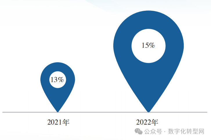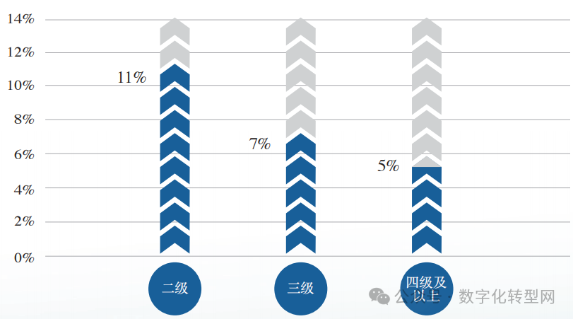 根据自诊断数据统计,截至 2022 年,原材料行业的企业中11% 的企业处于成熟度二级,达到成熟度三级及以上的企业有12% 。 数字化转型网(www.szhzxw.cn)