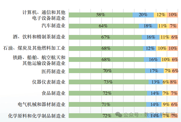 从发展阶段来看,进入数字化网络化制造阶段的制造业企业达到 37%。