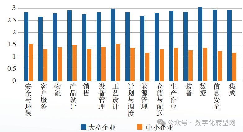 据统计,中小企业有接近50%的企业首先在采购、财务、工艺设计等与供应链相关的环节开展了数字化改造。在产品设计环节应用了三维建模仿真、在制造环节应用了生产管理系统、在质量控制环节应用了在线检测设备的企业仅有 20% 左右。