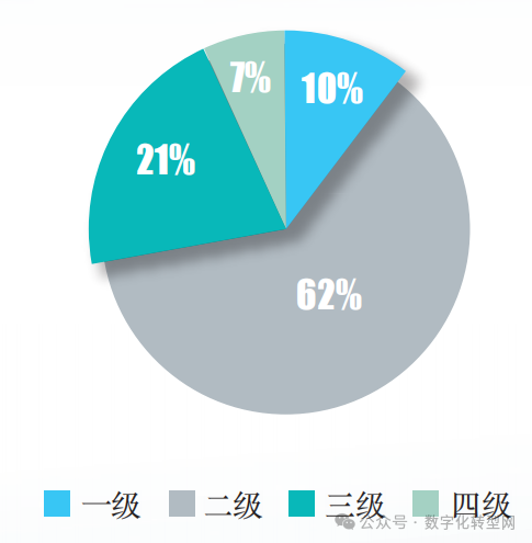 从等级分布来看,达到智能制造能力成熟度一级的制造业企业占比32%,达到智能制造能力成熟度二级的制造业企业占比21%,达到智能制造能力成熟度三级的制造业企业占比12%,达到智能制造能力成熟度四级及以上的制造业企业占比4%。 数字化转型网(www.szhzxw.cn)