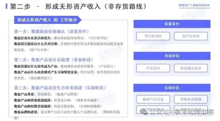 数据资产分析:到第二个数据资产的分析阶段,需要介入的还是数据管理部门以及业务部门。但为了后期的入表工作更能达到国家现有或者未来发布的管理办法与法规要求,内部的合规部门也必须参与进来。否则做出来的不管是无形资产还是存货的数据产品,若不合法不合规,交易不仅仅不能带来收益,反而会给企业带来巨额损失。