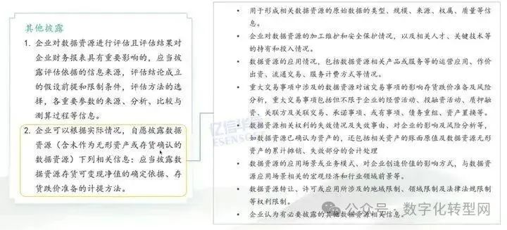 同样的,业务上配套的管理办法也要跟得上。如果一旦产生新的数据源要做认定和判断一定要有细的流程,而财务的认定和判断只是总体的会计认定原则。细的流程应该是业务部门或业务联合数据科技部门联合颁布,比如24年1月1日开始每天业务端新产生的数据,数据产生过程该怎么进行维护管理, 产生过程所需要的核算、所需要的信息披露、所需要的信息谁来采集,这就涉及到日常长效的工作流程,需要由业务部门和数据部门去制定。 数字化转型网(www.szhzxw.cn)