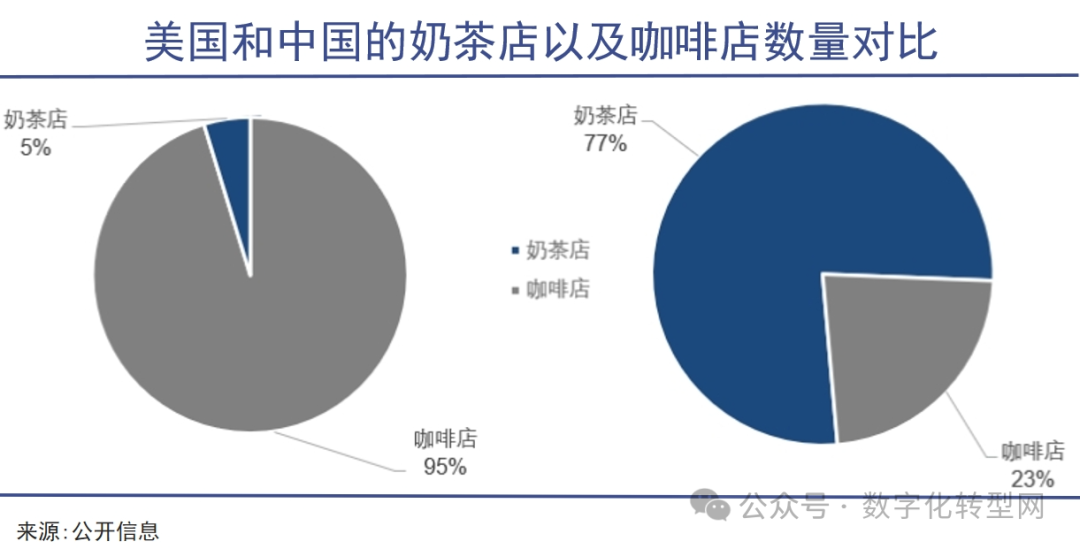 在中国市场,奶茶的销售量和消费频率早已大幅超过咖啡,现制茶饮中奶茶店占比达到77%。但在美国,喝奶茶仍旧是一个新兴风潮,美国奶茶店数量占比尚不足5%,且根据2022年美国饮品消费调查显示,美国消费者对汽水(18.7%)、咖啡(10.8%)、啤酒(9.9%)、饮用水(9.5%)的偏好均高于牛奶(7.8%)和茶水(5.4%)。 数字化转型网(www.szhzxw.cn)