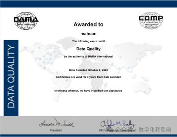 数据管理专业认证(Certified Data Management Professional,CDMP)是 DAMA国际推出的唯一国际专业认证,CDMP 认证证书授予那些具备以下综合条件资格的人员,这些条件包括教育程度、技能经验和基于测试的专业知识考试。 数字化转型网(www.szhzxw.cn)