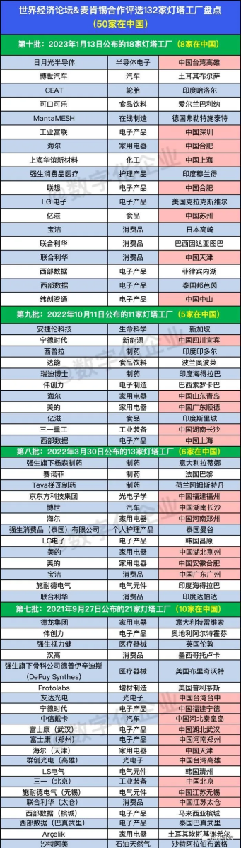 (一)132家灯塔工厂名单(截至2023年1月)