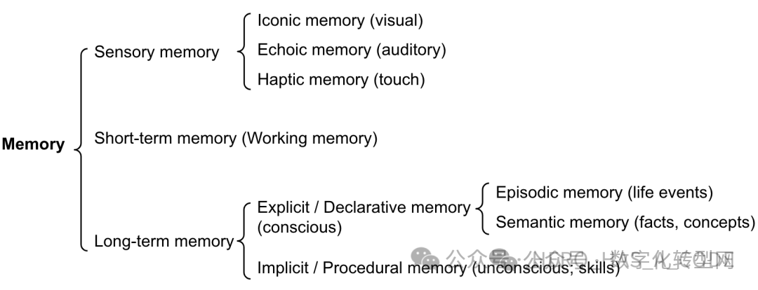 AI Agent的记忆模块是一个研究的热点,这不仅因为它在智能体的学习和决策过程中扮演着核心角色,也因为它体现了智能体适应和进化的能力。在OpenAI应用人工智能研究负责人Lili Weng的博客文章《LLM Powered Autonomous Agents》中,将AI Agent的记忆模块分为三个主要类型:感觉记忆、短期记忆(STM或工作记忆)和长期记忆(LTM),每种类型都有其独特的功能和实现机制。