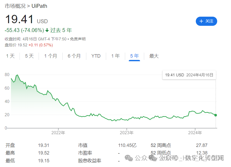 在SaaS热潮期间,API和RPA不仅仅是技术工具,更成为市场的焦点。例如,在API领域,2019年11月15日,MuleSoft被Salesforce以65亿美元收购,而Zapier则仅凭130万美元的融资发展成为估值超过40亿美金的行业新星。在RPA领域,Uipath、Appian等公司也通过上市成功实现了快速增长。尽管这些公司的营收仍在显著增长,但随着SaaS浪潮的逐渐退去,它们的估值却出现了较大的回调。