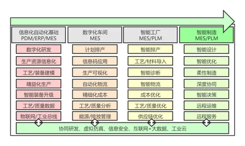 智能工厂以工业自动化中的ERP-MES-PCS三层构架、PLM为中心的工厂产品设计技术和售后服务、SCR、CRM为中心的原材料供应物流和制成品销售物流为基础。