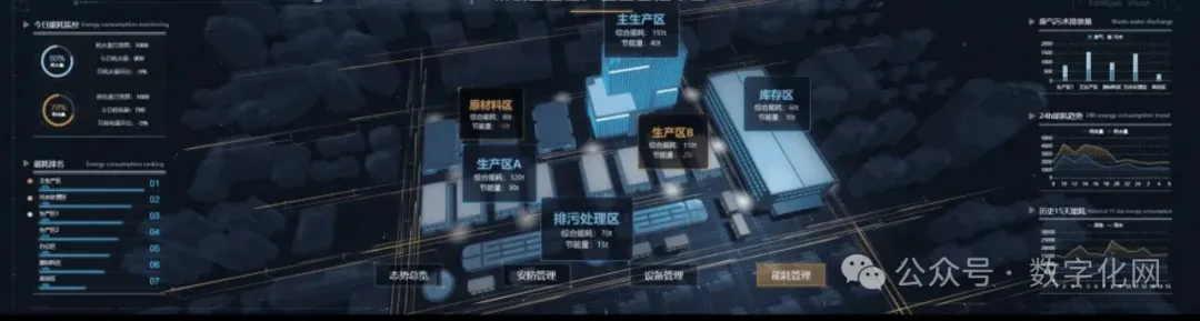 态势总览模块是智慧工厂数据可视化大屏的核心部分,它通过各种可视化图表展示工厂的整体运行情况。这些图表包括生产进度、设备状态、产品质量等方面的数据,让管理者可以一目了然地了解整个工厂的运行状态。 数字化转型网(www.szhzxw.cn)