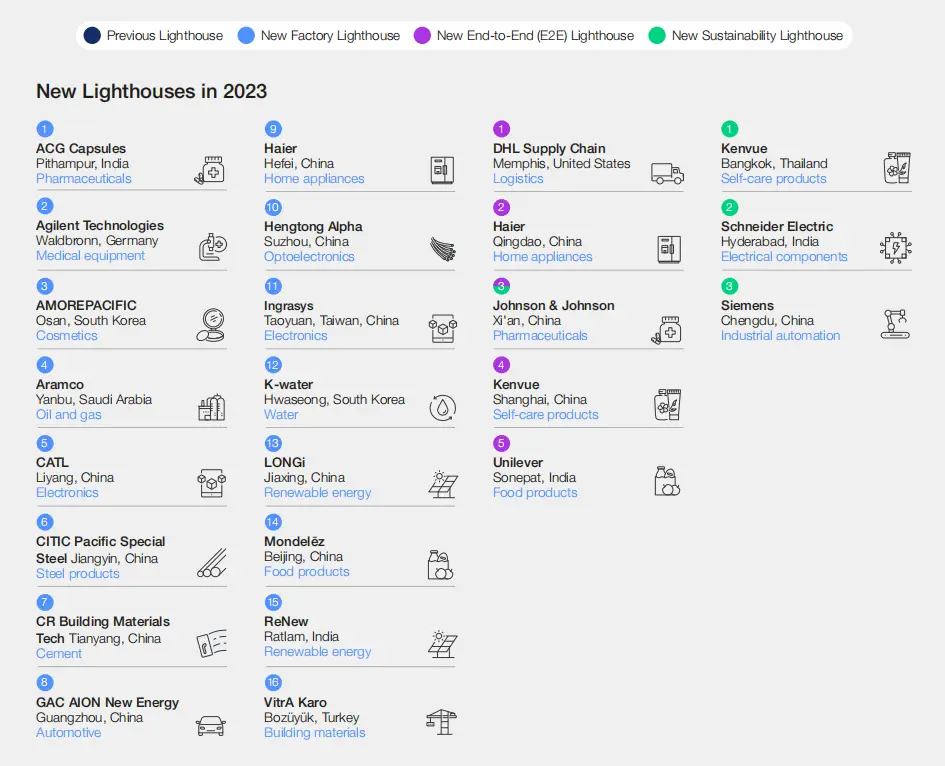 | 世界经济论坛&麦肯锡合作评选 第十批:2023年12月14日公布的21家灯塔工厂(12家在中国) | |||