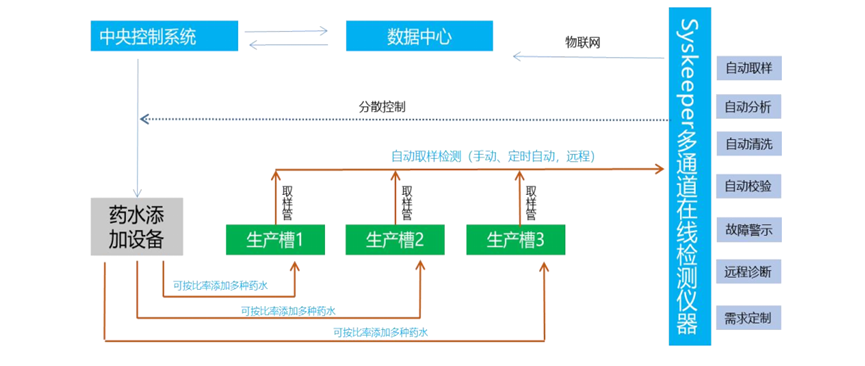 利欧注重利用数字化工艺提升产品整体工艺水平,通过数字化工艺规划、设计、控制、设备管理、数据分析和培训管理等手段,提高生产效率和质量,降低生产成本,提高企业的竞争力和市场占有率。例如,工厂为了减少生产过程中槽液药剂浓度的波动,并对检测参数及加药量实时记录及反馈,及时高效发现生产过程中的异常,降低不良品的产生,总体上降低生产成本,建设了涂装前处理生产智能控制系统。通过数据中心控制自动化设备替代人工对工作槽液进行自动采样、自动检测、自动补加并进行数据分析,部分示例如图3、图4、图5所示。
