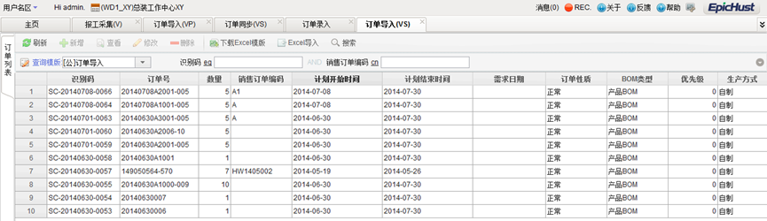 通过MOM系统计划调度相关模块建设,建立了统一的生产计划管理体系,按照产品的工艺路线及BOM,结合产线产能、订单交期及优先级,考虑半成品库存等因素实现总装、部装、零部件等生产计划辅助排产及动态调度,实现灵活的计划拆分、下达、调整、暂停、及自动报工等,如图7所示。系统支持从SAP读取制定好的订单需求,同时也支持用Excel表格导入制定好的生产计划。计划输出的结果是面向具体工位的可操作计划,包括:任务号,批次号,工件号,工件名称,开工数量,完工数量,车间,班次,开工时间,完工时间等内容。