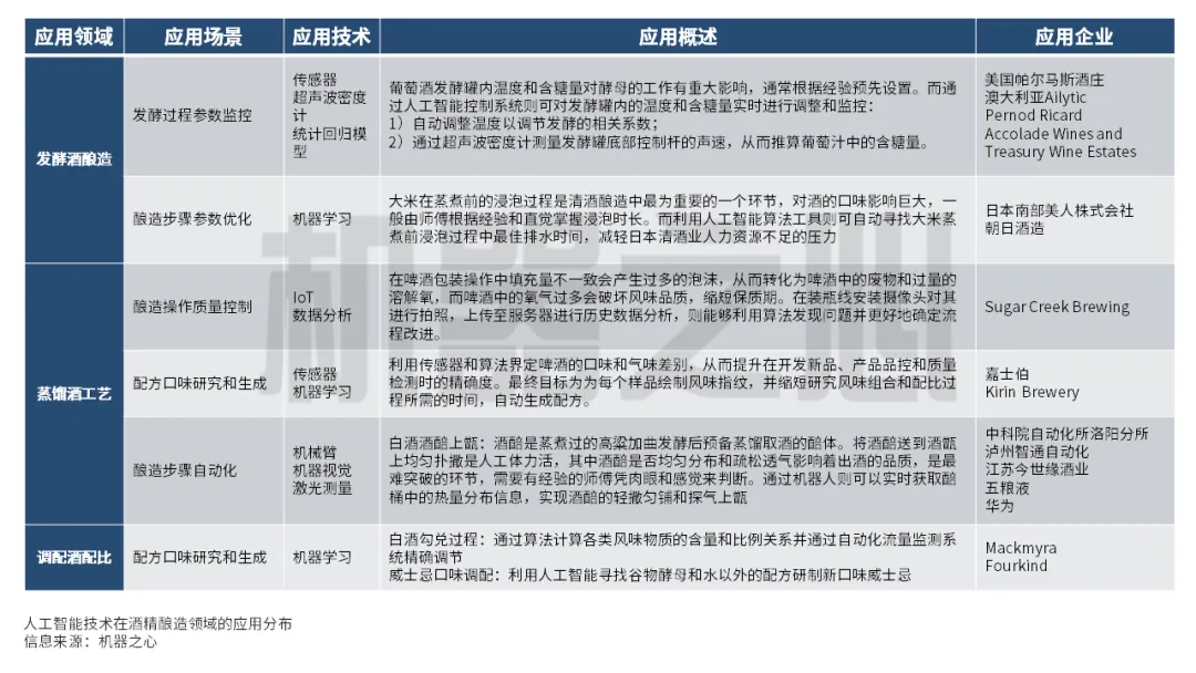 制酒是一个古老的行业。随着现代化的发展,不少酒种已经实现了大规模工业化的生产。然而人们并不完全满足于机械代替人类劳动生产的酒饮。传统工业化制酒意味着统一的标准,预先设定的参数和精确的品控,出品的酒未必比得过小规模的人工精酿。另一方面,人工作业对人力资源要求巨大,有经验的师傅稀缺使得成本高昂。人工智能应用的成熟让这个行业对通过技术降低成本,提高品质有了新的想象。无论是在工业生产线上,还是在以人力为主的步骤,人工智能都能有所帮助。本文将介绍世界范围内业界已经出现的应用,并提出一点思考。 数字化转型网www.szhzxw.cn