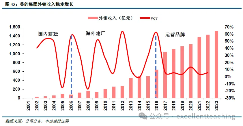 进入全球化第三阶段后,美的外销收入基本维持稳定增长。