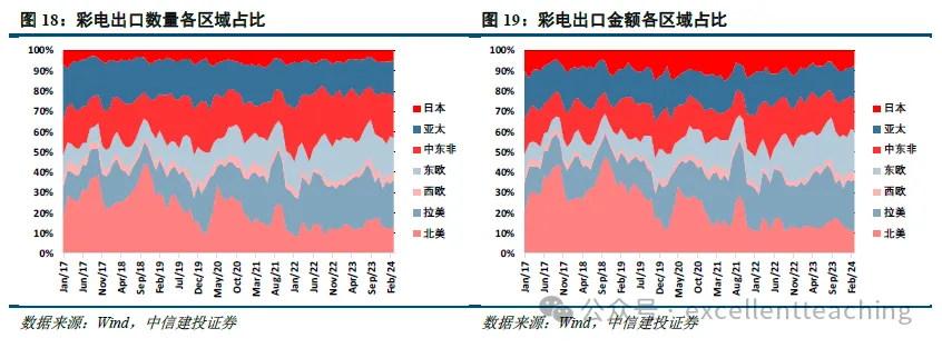 (2)黑电:出口区域结构发生显著变化,新兴市场占比明显提升