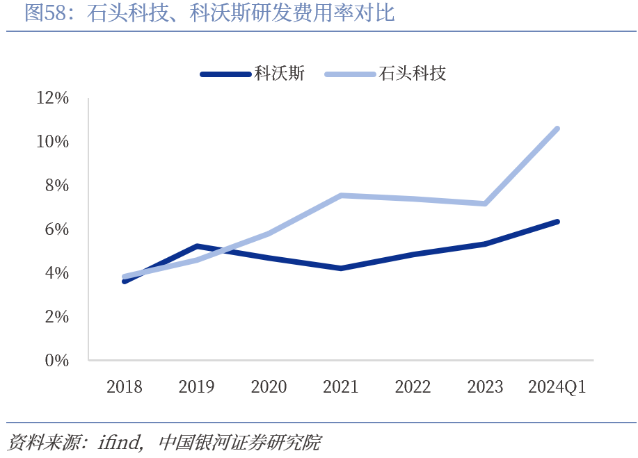 以高水平研发提升产品附加值,为小家电出口树立了优秀的范本。石头科技聚焦扫地机器人和其他智能清洁设备,高度重视技术研发,近5年研发投入年复合增速达40%,2024年Q1公司研发费用率高达10.59%,研发费用率高于同业。公司掌握扫地机导航建图的路径规划核心技术,基于LDS激光雷达测距+SLAM算法+AI智能路线规划技术,实现精确环境感知、智能避障和全局智能清洁路径规划,筑造了较为坚实的技术壁垒。公司推出扫拖一体机,并研发全能基站产品推向市场,用户体验大幅提升。反观石头科技出海欧美的主要竞争对手之一iRobot产品创新研发节奏缓慢,产品力表现平平,扫拖一体机产品缺失,因此主要市场美国亚马逊被石头抢占。石头科技依托核心算法技术,打造行业领先的全能基站产品,占领了中高端价格带,特别是海外市场,公司推出具有代际优势的产品,降维打击主要竞争对手,成功树立了高端化形象。