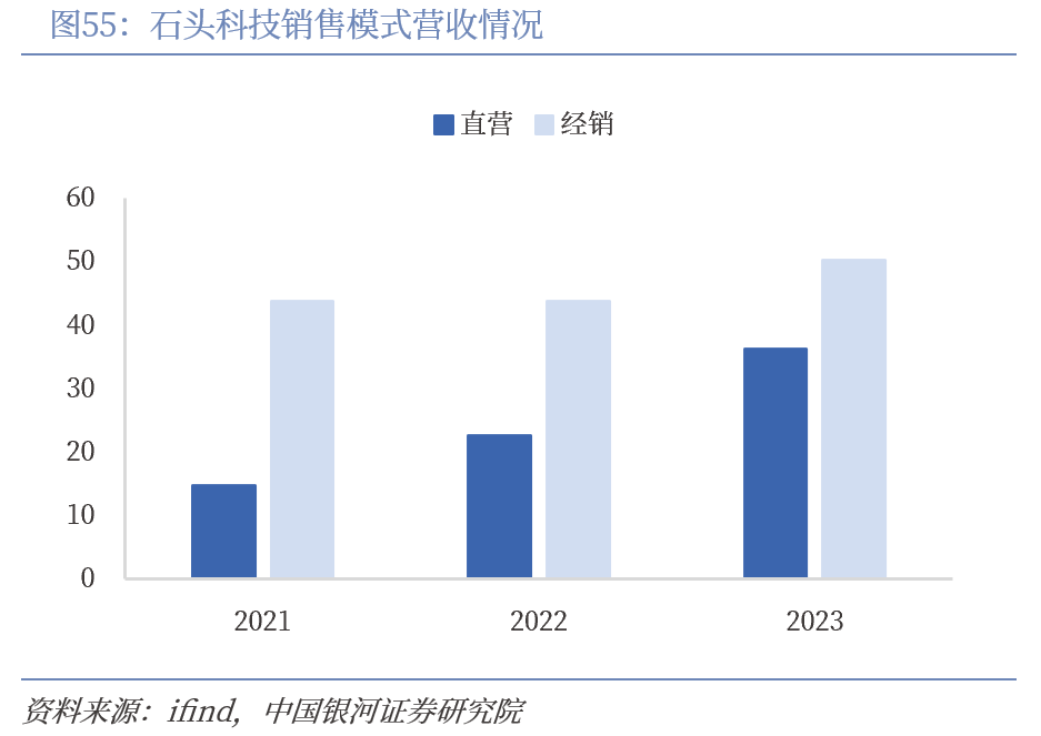 科技创新塑造高端化品牌形象,差异化渠道建设策略卓有成效。公司于2014年成立,2018年公司产品正式登陆北美和欧洲市场,2022年、2023年公司高端扫地机销量、销额分别登顶全球第一,智能化、高端化、国际化的品牌策略卓有成效。销售渠道方面,石头科技在美国以亚马逊线上为主,2022年初将美国亚马逊渠道收回自营,缩短了渠道链路,利于快速捕捉终端消费变化,后续实现了美国亚马逊销售的快速增长,随后加快德国、西班牙、日本等地的线上直营渠道建设,2023年石头科技直营收入36.25亿元,同比增长61.21%。同时,公司积极布局线下渠道,2023年首次进入美国线下实体连锁零售渠道Target,已扩展到美国线下180多家Target门店。