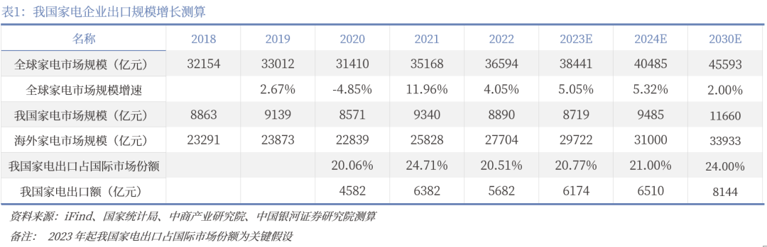 2、我国家电企业在全球市场的份额仍有提升空间,出口端增长潜力较大