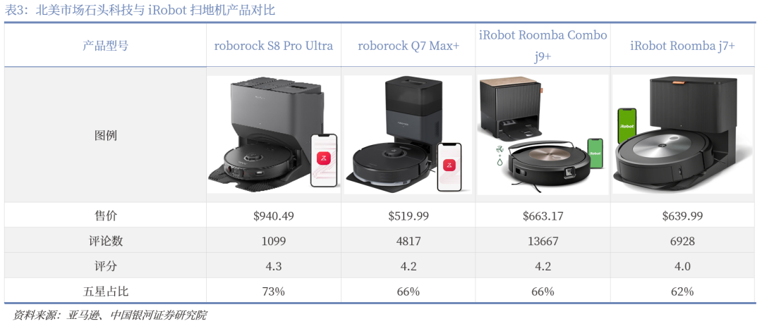 我国家电技术和产品持续创新。在冰箱领域,我国风冷冰箱普及率早已高达90%以上,目前正向着平嵌、超薄等方向发展;而国外风冷冰箱销量占比近半,与国内存在代差。在新兴小家电领域的差距更为明显,石头科技通过较强的产品竞争力和使用体验抢占消费者心智,逐步摆脱价格竞争的策略,在亚马逊平台上石头科技扫地机器人产品智能体验水平和高端产品定价均已超越北美品牌iRobot。
