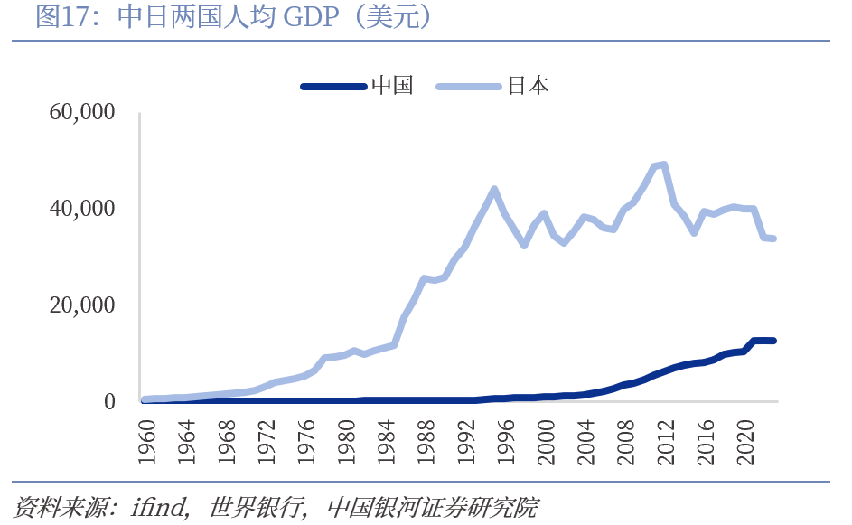 1975-1984年期间日本经济增长速度和人均GDP与我国当前水平相近。1975-1984年,日本GDP增速处于2%-6%之间,增速较先前的8%以上有所放缓。人均GDP方面,日本1985年人均GDP水平突破万美元大关至11809美元,截至2023年我国人均GDP达到12614.06美元,从收入端推测,我国居民当前的理论消费能力与彼时的日本相近。