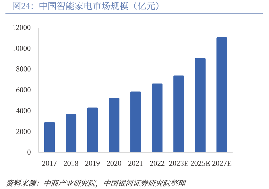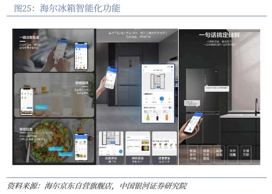 家电销售增速放缓背景下,我国家电市场也呈现产品升级和新品拓展的良好态势。近几年中国家电销售增速放缓,大家电品类尤其是城镇居民平均保有量增长接近瓶颈,伴随数字经济、人工智能等新质生产力的快速发展,国内家电市场进而掀起产品品质升级与数字化AI变革,智能化、绿色化趋势指引家电产品功能升级。现阶段,万物互联实现家电互联互通,实现基础的远程控制和智能化功能,随着AI创新赋能和智能家居生态的建设,传统家电逐步向智能化转型,例如海尔智能冰箱已研发出AI慧眼识别和智能试管夹技术,通过食材感知,提供食材管理和智能保鲜,通过训练上亿条语料和85万多条知识问答,构建了垂直领域文本分类和知识图谱模型,提供定制化健康饮食方案;海信AI交互冰箱通过食材动态感知,实现保质期和存取位置的精准管理,AI算法还根据冰箱内食材、节气时令、温度、家庭成员健康信息等多维度提供菜谱,针对特殊人群语音提醒饮食禁忌。类机器人深入推进,各类产品如燎原星火。传统家电升级之外,现阶段扫地机器人智能化+清洁技术突破,已基本实现解放双手,背靠懒人经济、实现健康便捷烹饪的炒菜机器人已处于产品导入期,此外,小家电产品如除螨仪、空气炸锅等新品也刺激家电需求,释放新的消费活力。