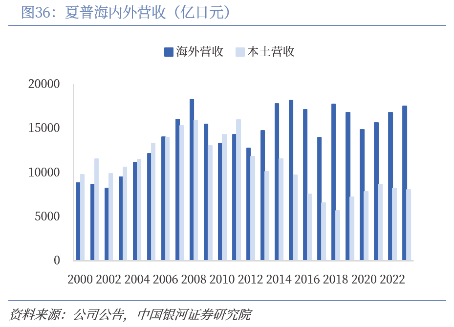 2.产能迁移+品类拓展——夏普:主业黑电技术领先但毛利薄弱,拓展其他家电业务