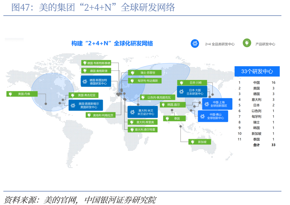 自有品牌+收购,海尔实现从产能国际化到品牌全球化。作为中国家电出海先行者,海尔早在1998年便确立了出海战略,2005年提出“全球化品牌战略”,通过“自主品牌+本土化运营”,而后在2011年开启海外并购之路:2011年收购三洋电机白电业务,扩张在日本及东南亚市场份额;2012年收购新西兰最大家电制造商Fisher & Paykel;2016和2018年先后收购通用电气旗下白电业务和意大利Candy公司。今年海尔拟收购伊莱克斯南非热水器业务,借助其渠道优势,拓宽白电在南非市场的发展。至此,海尔智家完成了“Haier、Casarte、Leader、GE、Fisher & Paykel、AQUA、Candy”七大品牌组成的全球化品牌集群布局。截至目前,海外在全球设立了10大研发中心,71个研究院、35个工业园、143个制造中心和23万个销售网络,连续6年蝉联“凯度BrandZ最具价值全球品牌100强”。