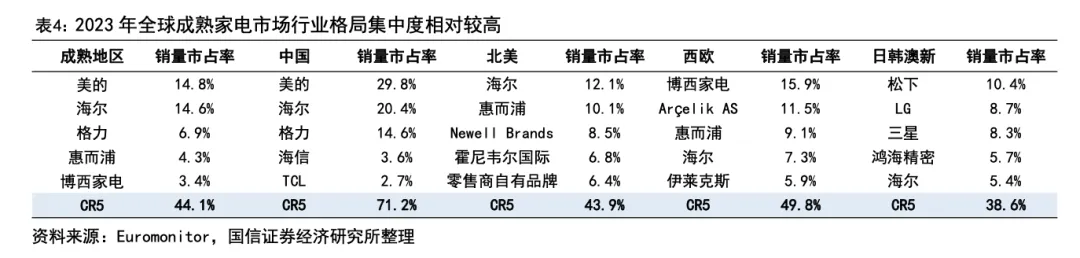 成熟市场的大家电行业竞争格局较为稳定