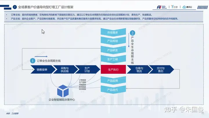 全场景客户价值导向型灯塔工厂设计框架 。包含了产品实现的端到端订单生命周期价值链,以及产品生命周期管理的价值链