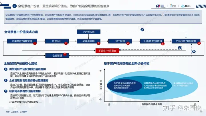 全场景客户价值:重塑端到端价值链,为客户创造全场景的新价值点 。包含了供应端的价值重构,客户端的价值重构,以及研发过程的端到端的价值重构。从生产场景的机制创造到运营场景的价值创造到全场景的价值创造,距离客户越来越近,囊括的价值链条越来越长乃至全产业链条的价值重塑。