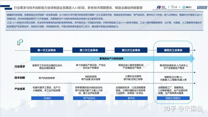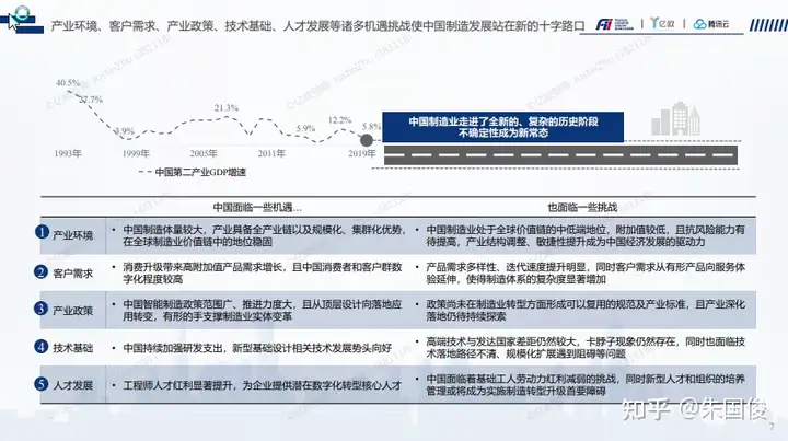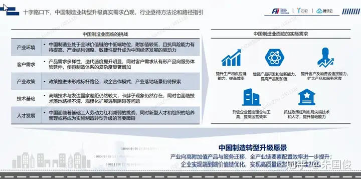 十字路口下,中国制造业转型升级真实需求凸现,行业亟待方法论和路径指引。中国制造业急需:提升生产和供应链能力,提升效率;增强产品研发和创新能力,提升产品附加值;提升客户和消费者联结能力,扩大产品和服务营收;升级企业管控理念和工具,提升运营效率;抓住政策红利布局尖端技术和人才,提升基础能力。