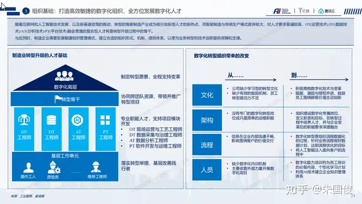 组织基础(人才保证):打造高效敏捷的数字化组织,全方位发展数字化人才。培养专业化的数字化人才队伍(O/D/A/PT), 从组织架构搭建,组织流程建设,人才团队培养, 激励机制和企业文化全方位的提升数字化组织成为,打好数字化的基座。