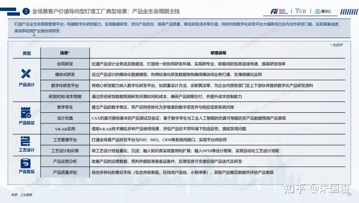 全场景客户价值导向型灯塔工厂典型场景:产品全生命周期主线。包含了从产品设计到产品验证,工艺设计,产品售后等4个主要的场景。