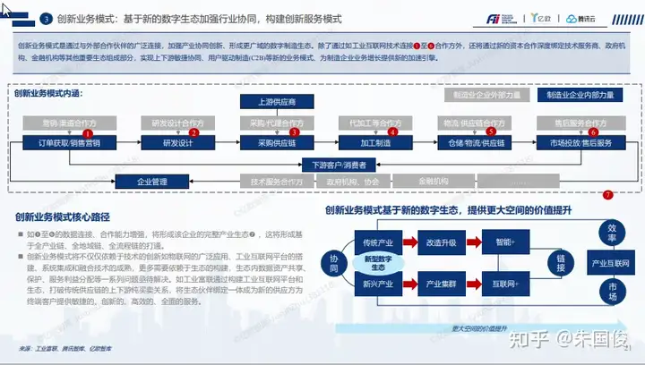 创新业务模式:基于新的数字生态加强行业协同,构建创新服务模式。通过增加同企业外部力量包含政府,金融机构,技术服务商等生产组成部分的系统,实现上下游敏捷协同、用户驱动制造(C2B)等新的业务模式、为制造企业业务增长提供新的加速引擎。