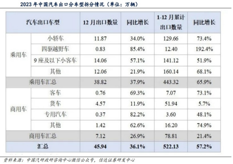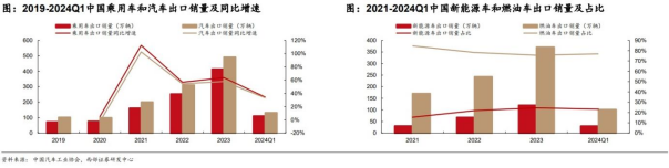 (1)中国汽车出口均价1.9万美元,预计2024年出口销量同比增速12%-25%