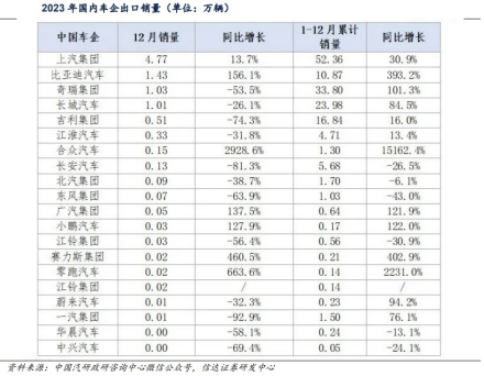 (1)上汽集团:2022年出口及海外基地销量101.7万辆,同比增长45.9%,保持国内行业第一