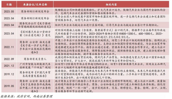 2023年,政策端密集提到“汽车出口”,根据相关会议和政策可以看出国家支持出口的确定性较强,后期若有具体政策出台落地,将进一步利好中国汽车出海。