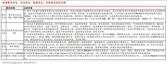 准入法规:进入海外市场时车企需面对各国强制性认证、环保法规、数据安全法规等。