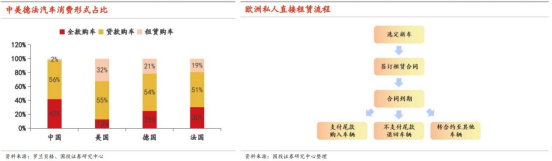 3、渠道:销售模式有差异,网络搭建与管理有难度销售模式的差异化:目前中国以全款和贷款购车为主,而欧美市场租赁购车比例较高,蔚来汽车CEO李斌曾表示,在德国、荷兰、丹麦、瑞典四国,C级以上车租赁占比达到60%。租赁一般可分为两种形式,一种是私人直接租赁,即消费者与代理经销商签订租赁合同,确定首付比例、尾款比例、租赁周期等,租赁到期之后,消费者可以选择支付合约规定的尾款购入该车;也可以不支付尾款,直接将车退回,甚至可以转换合约至另一款新车;另一种是通过企业租赁,即当地企业与车企或租车公司达成合作,员工以公司福利形式获得车辆的使用权。渠道网络搭建:欧洲市场国家众多、无法采用一家代理商覆盖整个欧洲的方式,故需要在各国寻找不同经销商集团合作;本土品牌强势以及长期被日韩系主导的市场(如东南亚),存量渠道多被占据;进入早期,经销商对中国品牌认知不足导致缺乏信心、或缺乏统一管理培训、质量参差不齐。